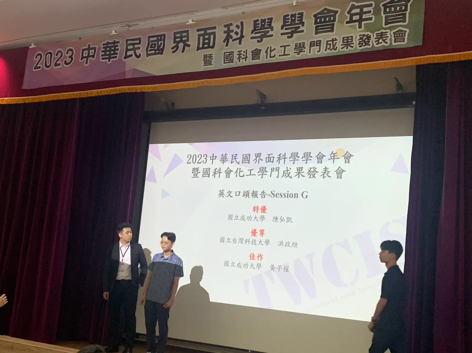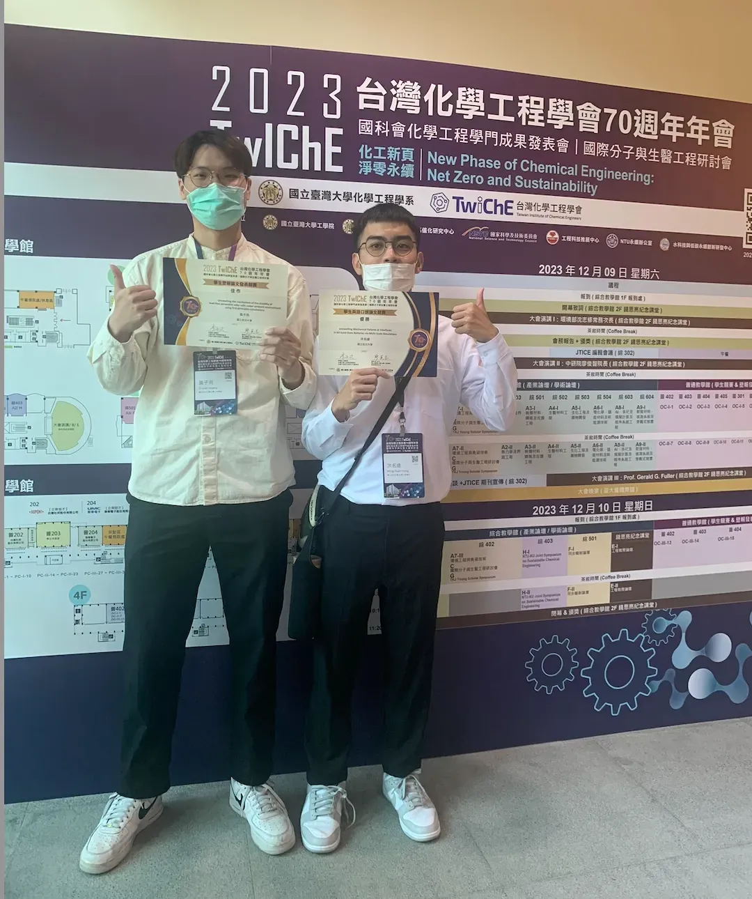 Congrats to Ming-Yuan Hung (洪名遠) for getting the Excellent English Oral Presentation Award (英語口頭競賽優勝) and Zih-Lie Huang (黃子冽) for getting the Honorable Mention Poster Award (海報競賽佳作) at 2023 TwIChE Annual Meeting (2023台灣化工年會), NTU!