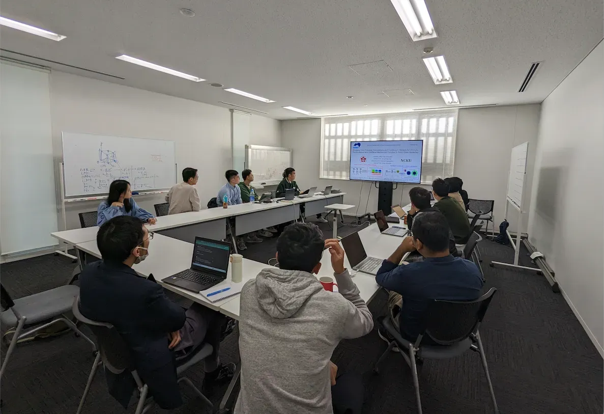 Prof. Tian and six graduate students visited the National Institute for Materials Science (NIMS) in Tsukuba, Japan, and had joint seminars with Prof. Ken Sakaushi, Dr. Randy Jalem, and Prof. Atsushi Ishikawa, along with their respective research groups. We discussed our collaborative work and shared many interesting and ongoing projects. We are deeply grateful for the warm hospitality extended to us by our Japanese counterparts and looking forward to the prospect of welcoming them to NCKU, Tainan, in the near future.