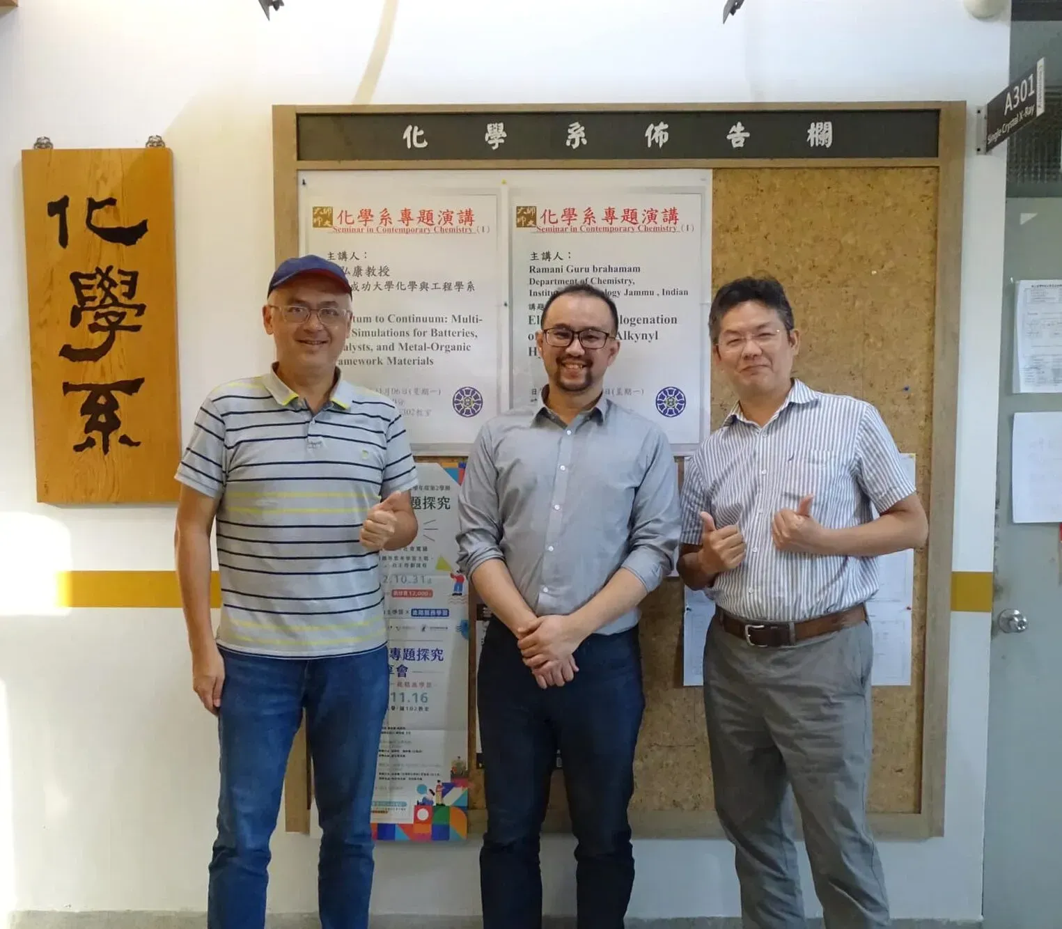 Prof. Tian was invited to give seminar talks in the Department of Medicinal and Applied Chemistry at KMU (高醫醫化系), the Department of Chemical Engineering at NTHU (清大化工系), the Institute of Atomic and Molecular Sciences at Academia Sinica (中研院原分所), and the Department of Chemistry at NTNU (師大化學系).